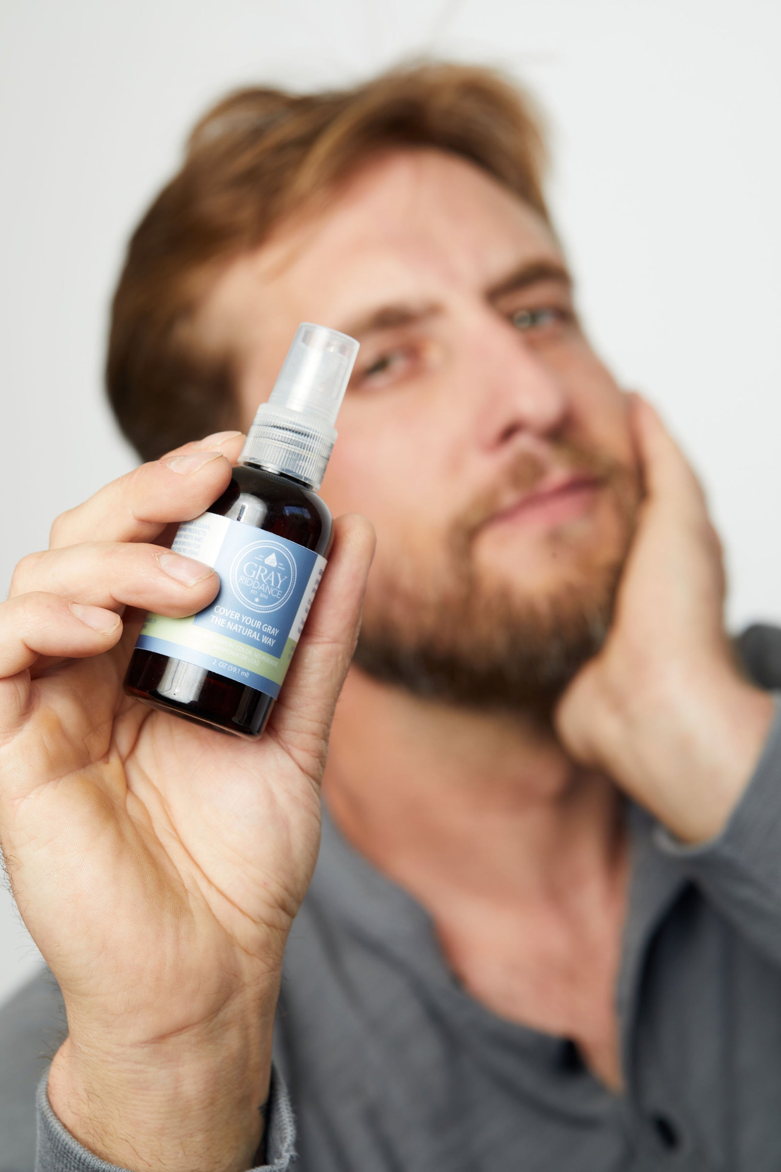 Spray the root touch up on your roots and/or strands that you plan to color. Shake the bottle frequently while spraying. After application, your hair should be damp, but not dripping from excess product. Comb or brush the color into the hair. For smaller areas requiring precision, spray onto a small flat brush. Then brush into the gray hair roots or gray hair areas.