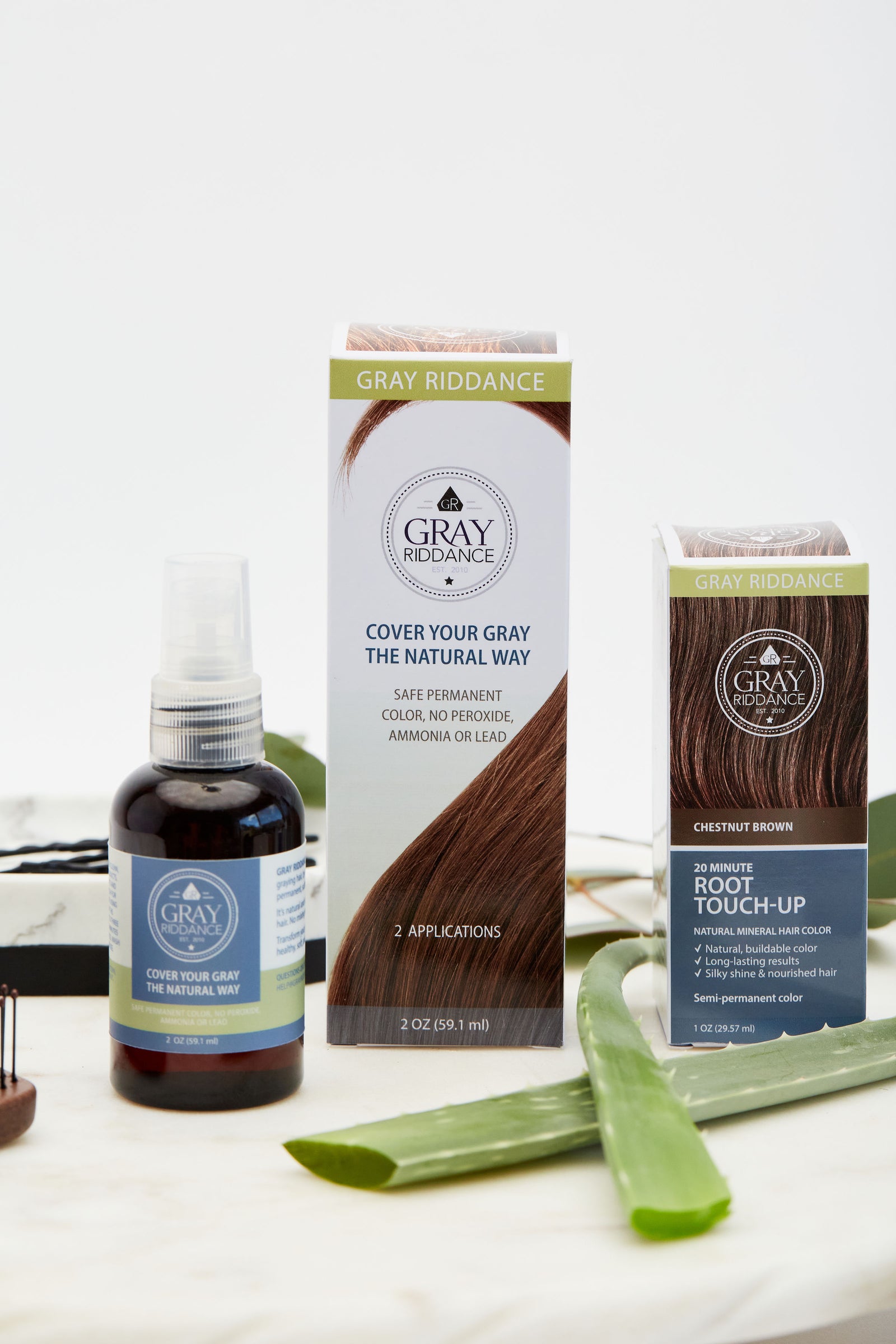 Gray Riddance's line of products now includes a Mineral hair color and The Original Semi Permanent Spray. For a full breakdown of each product, click here.